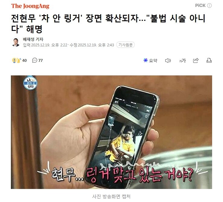 정리|전현무 링거 사진, 진실은 무엇인가