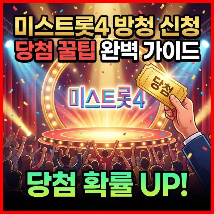 트로트의 감동을 TV 화면으로만 만족하기에는 아쉬우신가요? 매주 대한민국을 뜨겁게 달구는 국민 오디션, 미스트롯4의 생생한 현장 에너지를 직접 느끼고 싶다면 이 글을 놓치지 마세요! 수십 대 일의 경쟁률을 뚫고 꿈의 무대 방청에 성공하는 비법부터, 놓치지 말아야 할 준비물과 현장 꿀팁까지, 당신이 미스트롯4의 뜨거운 열기 속 주인공이 될 수 있도록 모든 정보를 하나부터 열까지 상세히 알려드립니다.