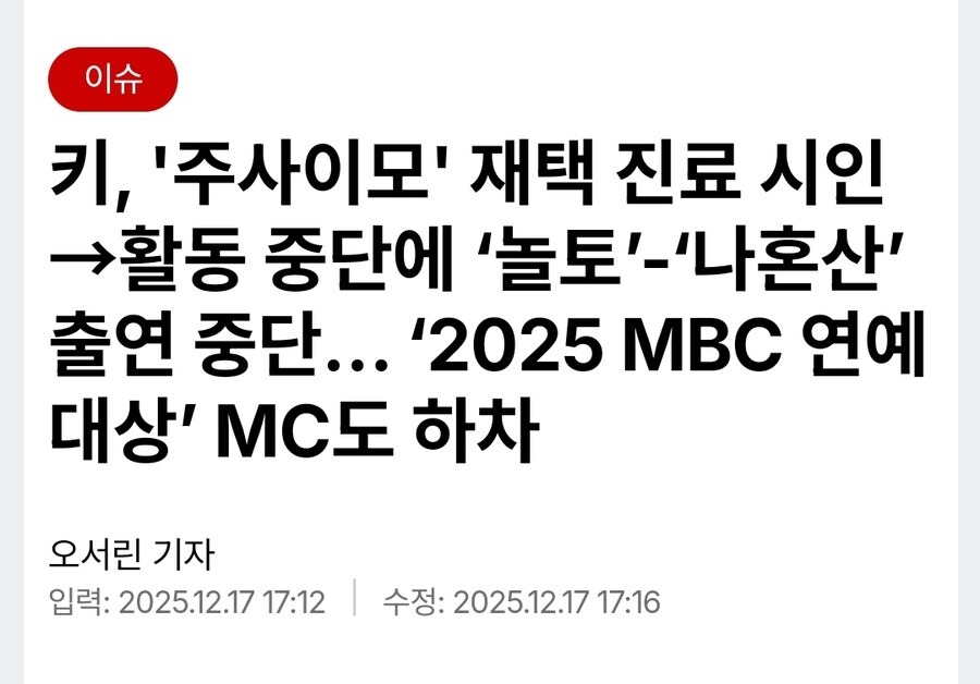 샤이니 멤버 **키(Key)**가 최근 불거진 **‘주사이모 진료 논란’**과 관련해